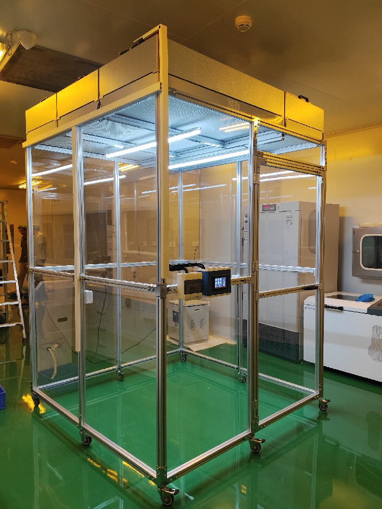 此項(xiàng)目潔凈棚尺寸為1800*1760,由鋁型材搭配亞克力板組裝而成,底部搭配萬(wàn)向腳輪,可隨意移動(dòng),設(shè)計(jì)潔凈度為百級(jí)。