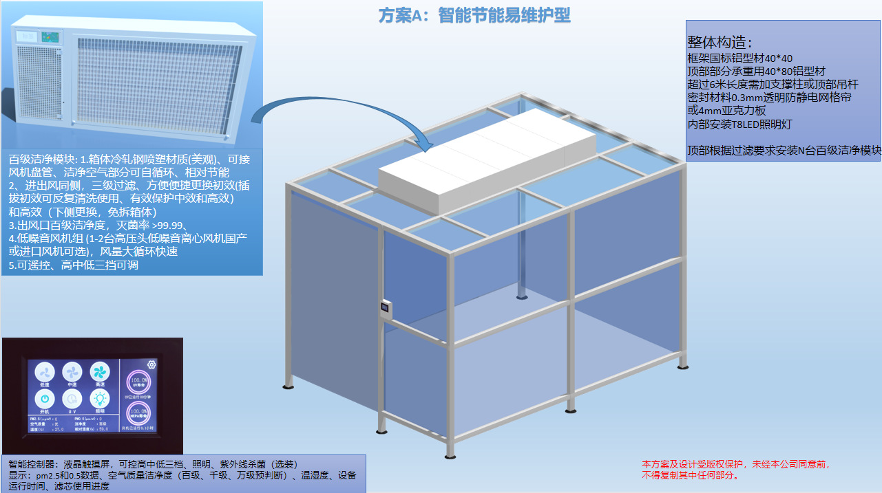 擴展性強:模塊化結構,可通過增加風機過濾單元(FFU)的數量等方式提高凈化級別,擴展性強,且重復利用價值高。